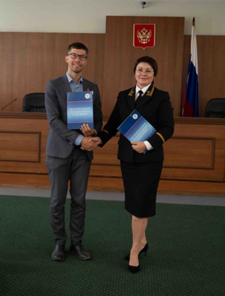 В историческое здание суда, расположенное по пр. Ленина, 8 г. Волгограда, прибыли активисты Волгоградского отделения Движение Первых — всероссийского сообщества детей и молодёжи, которых объединяет стремление к саморазвитию и любовь к Родине. «Первые» играют в «Зарницу», изучают медиапространство, включаются в движение по охране природы, проводят товарищеские спортивные соревнования, сохраняют историческую память о героях прошлого и настоящего, делают первые шаги на пути к выбору дела жизни. Школа правового воспитания Волгоградского отделения РОС работает с подрастающим поколением Волгоградской области с 2013 года, многие из её воспитанников стали студентами юридических ВУЗов и их выбор, учитывая занятия в ШПВ, является осознанным. Задачи ШПВ прекрасно сочетаются с программами «Мы граждане России!», «Первый в профессии», да и в целом с целями и задачами Движения Первых – содействие подрастающему поколению в профессиональной ориентации, самореализации и гражданском становлении на основе традиционных российских духовно-нравственных ценностей. Председатель Совета Волгоградского отделения РОС Светлана Юткина, выступление которой сопровождалось видеороликом, рассказала ребятам о практике работы с образовательными учреждениями города и области, а затем предоставила слово руководителю Волгоградского отделения Движения Первых Александру Воробьёву. По итогам общения, обсуждения общих целей и задач, руководители региональных отделений Российского объединения судей и Движения Первых подписали соглашение о сотрудничестве, реализация которого будет осуществляться с привлечением действующих судей, судей в отставке, сотрудников аппарата судов. Совместные проекты как раз та платформа, на которой можно строить и получать результат, направленный на правовое и патриотическое воспитание подрастающего поколения, популяризации профессии юриста. Не сомневаемся, что труды наши будут не напрасными, цели достигнутыми, а замыслы реализованными! Для ребят пресс-секретарь Волгоградского областного суда Александр Тюменцев провел обзорную экскурсию, рассказав об истории здания областного суда, его председателях, судьях – участниках Великой Отечественной войны, ветеранах судебной системы. Посетили музей, где экскурсанты смогли увидеть старинные издания Уложения о наказании, знак мирового судьи дореволюционной эпохи, ознакомились с экспозициями, посвященными судьям-участникам Великой Отечественной войны, Заслуженным юристам РСФСР А.М. Петрову и М.К. Братишке. Узнали о том, как проходил в Волгоградском областном суде процесс по делу о признании геноцидом советского народа преступлений нацистов на территории Сталинградской области, а также о проведенной 20 июня 2025 года реконструкции процесса студентами и преподавателями Волжского института экономики, педагогики и права. Посещая Волгоградский областной суд, его музей, участники Движения Первых смогли прикоснуться не только к предметам прошлых лет, но и познакомились с историческими фактами о становлении судебной власти на территории Нижнего Поволжья и её дальнейшем развитии. Такие тематические экскурсии играют важную роль для молодого поколения россиян и способствуют пониманию основ формирования судебной системы в целом, а также повышению эффективности правового 