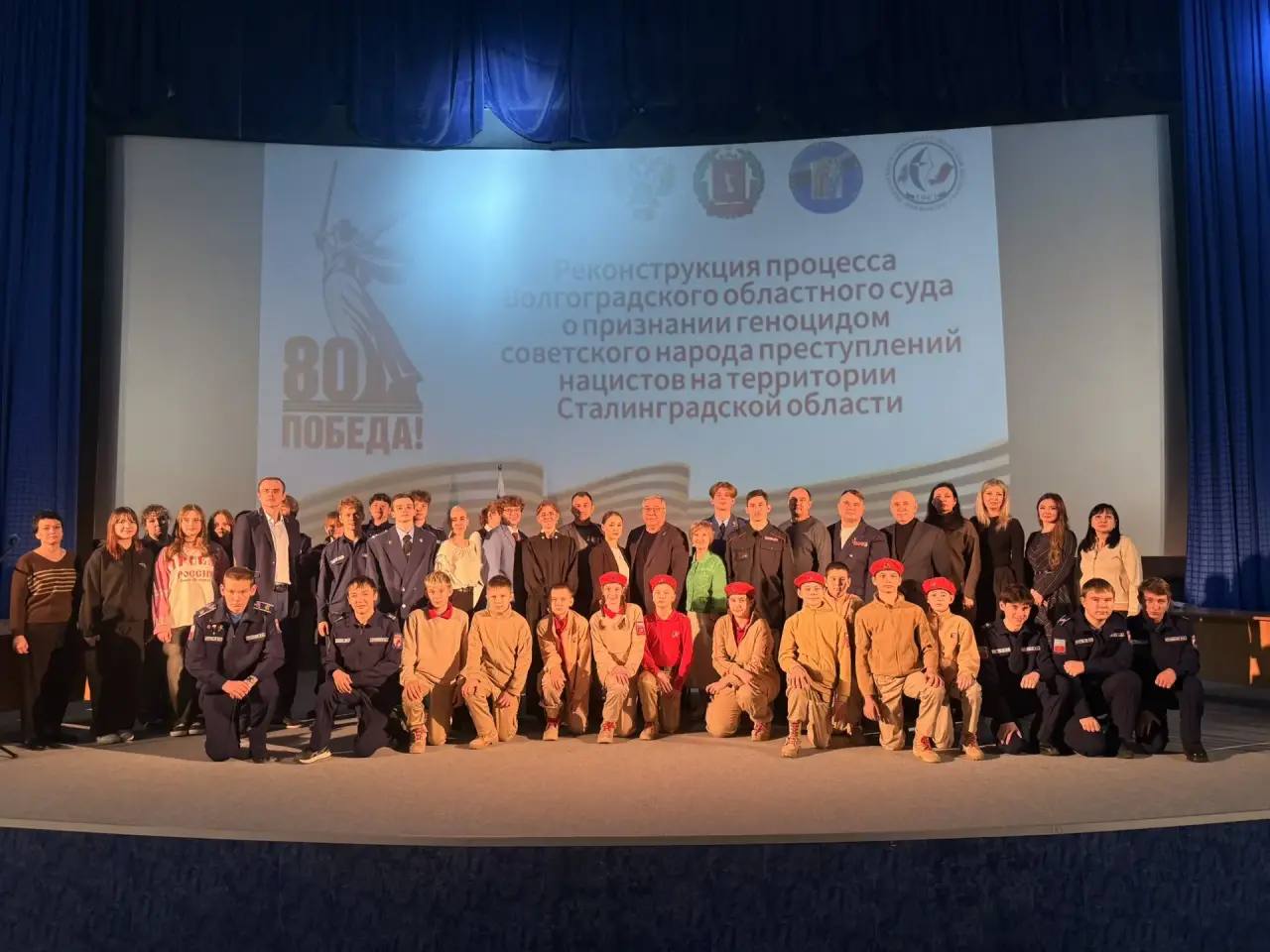 15 декабря 2025 года в городе Волжском во Дворце молодежи «Юность» студенческая студия «Мир театра» Волжского института экономики, педагогики и права провела реконструкцию судебного процесса Волгоградского областного суда о признании геноцидом советского народа преступлений нацистов на территории Сталинградской области, состоявшегося в 2023 году. Решением Волгоградского областного суда от 23 августа 2023 года преступления, совершённые в период Великой Отечественной войны 1941-1945 годов на территории Сталинградской области немецко-фашистскими войсками, нацистскими оккупационными властями и их пособниками в отношении не менее 361450 человек, признаны военными преступлениями и преступлениями против человечности – геноцидом. Всего же подобные судебные процессы прошли более чем в 30 субъектах Российской Федерации. Все они стали продолжением Нюрнбергского процесса над нацистскими преступниками. Главными героями реконструкции стали студенты, актив студии актёрского мастерства «Мир театра ВИЭПП», которые погрузили зрителей в атмосферу реального процесса 2023 года. Этот опыт был признан успешным. И решением Антитеррористической комиссии Волгоградской области под руководством губернатора А.И. Бочарова, было рекомендовано распространять опыт ГБОУ ВО ВИЭПП по организации реконструкции исторического судебного процесса с участием детей и подростков, раскрывающий ключевые события отечественной истории в борьбе с нацизмом, неонацизмом и терроризмом в образовательных организациях на территории Волгоградской области. Мероприятие, состоявшееся на днях в городе Волжском во Дворце молодежи «Юность», собрало более 300 зрителей. В его рамках прошла не только образовательно-патриотическая реконструкция судебного процесса, но и была организована соответствующая фотовыставка. Перед молодежью выступили ректор Волжского института экономики, педагогики и права Скоков Р.Ю., профессор Волгоградского государственного социально-педагогического университета, доктор исторических наук Болотов Н.А, а также пресс-секретарь Волгоградского областного суда, кандидат юридических наук, доцент Тюменцев А.Н. Молодые люди слушали выступления, затаив дыхание. Кто-то из них при этом вспоминал рассказы своих близких о страшных ужасах немецко-фашистской оккупации, о том, каким чудом родным удалось выжить в концлагерях, кто-то невольно примерял услышанное на себя. Это встреча никого не оставила равнодушным. Память о войне – это наша ответственность перед прошлым и будущим нашей страны. Мы – помним! |
