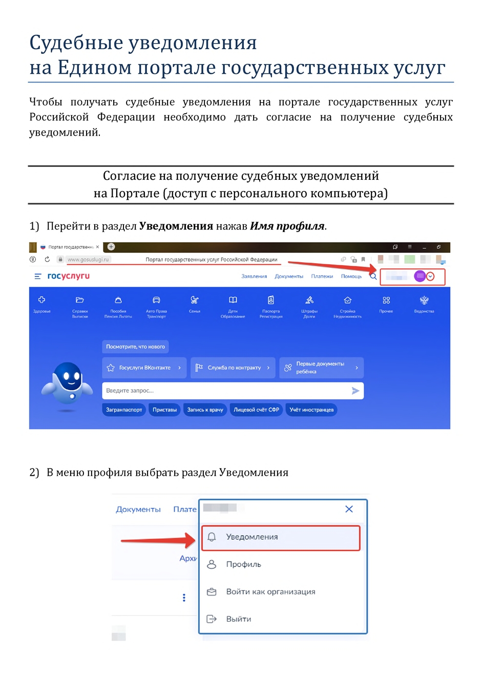 • Мгновенные уведомления о судебных заседаниях и решениях.